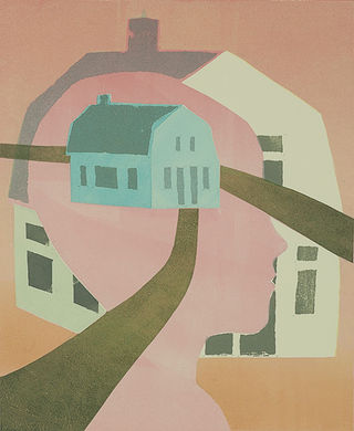 'Gedachtengroei' bestaat uit een doos met 6 prenten, ze zijn gemaakt n.a.v. teksten van mijzelf.